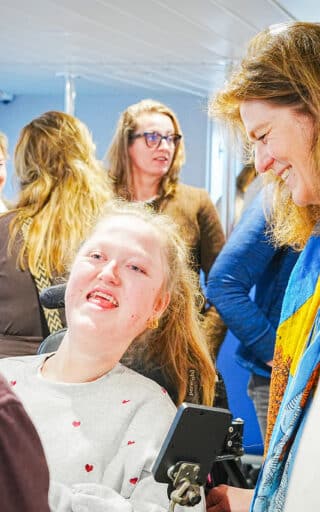 Vertellen over haar spierziekte vond Sara jarenlang erg lastig, maar omdat ze toch veel vragen krijgt, heeft ze goed geoefend. Toen het televisieprogramma ‘Je zal het maar hebben Junior’ vroeg of ze mee wilde doen, was Sara meteen enthousiast. Deze zomer kwam presentatrice Raïsha met een camerateam op bezoek en Sara vond het geweldig!
